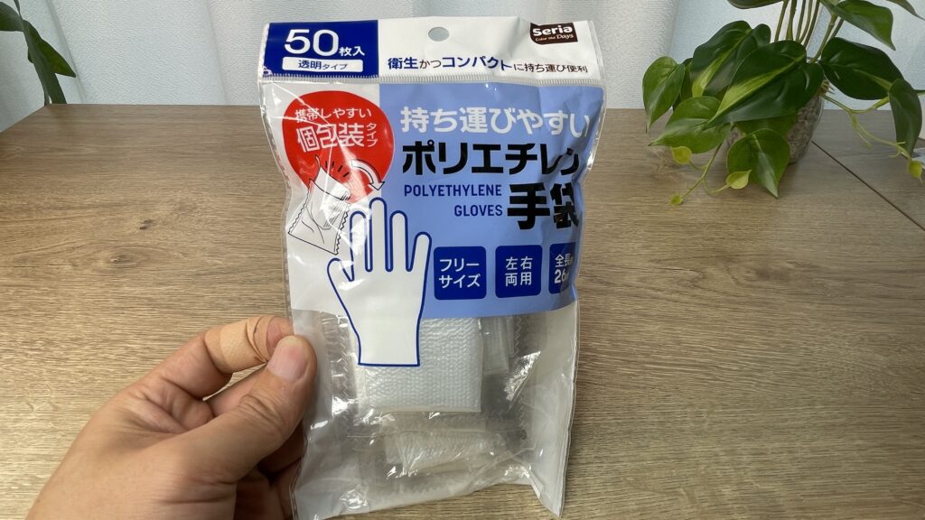 そこで今回は、セリアで見つけた「ポリエチレン手袋」をご紹介します。個包装で持ち運びしやすく、屋外でも使いやすい便利なアイテムでした。