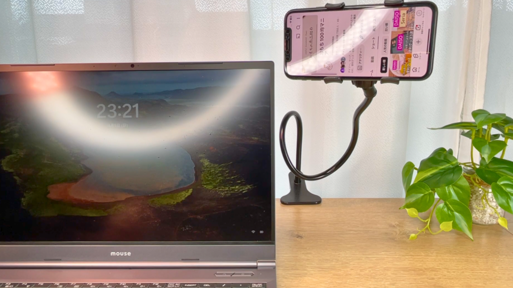 【ダイソー】好きな位置に調整しやすい!スマホスタンド(フレキシブルアーム)が便利